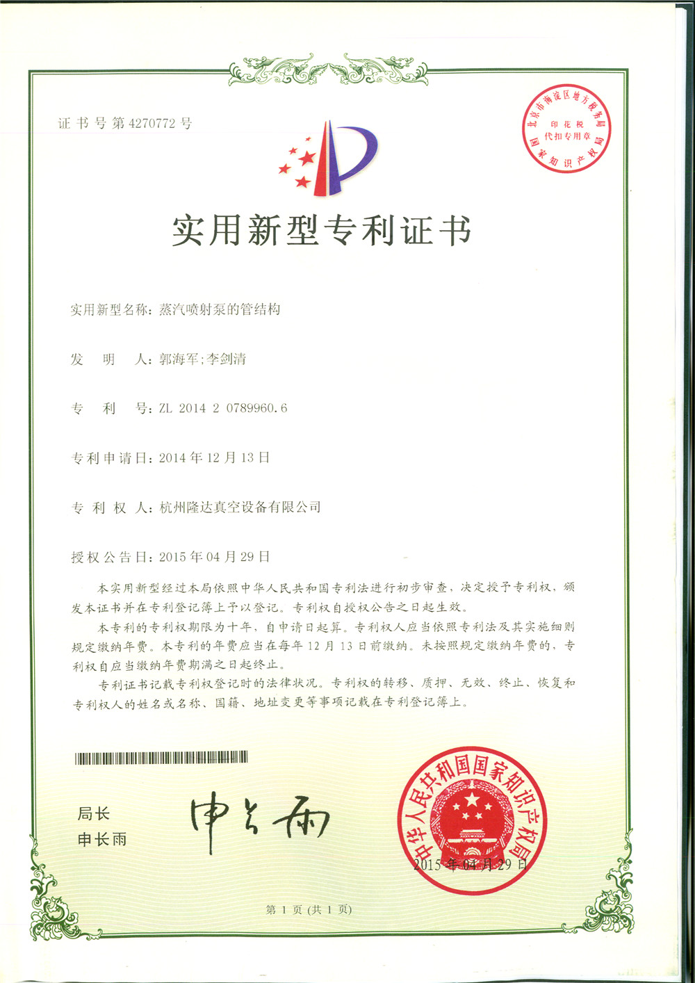 蒸汽噴射器管結構專利