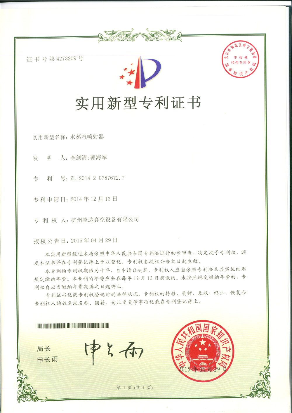 水蒸汽噴射器專利